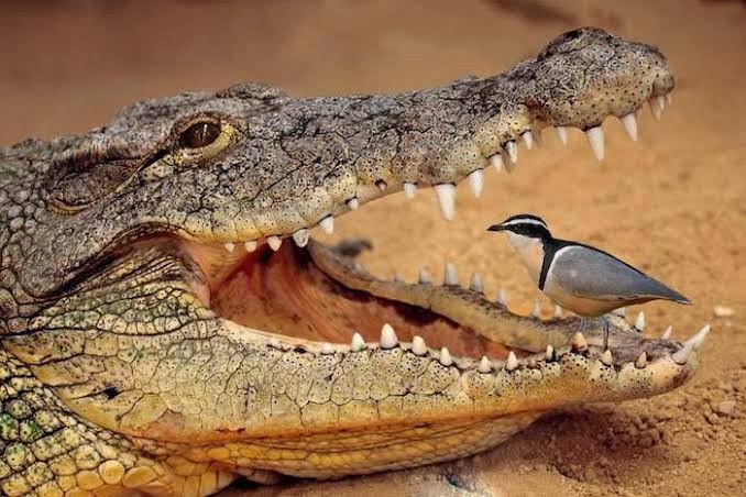 Picha na interesting facts. Picha hii inaonyesha ndege aina ya Egyptian plover akiwa katika kinywa cha mamba akiangalia kama kuna mabaki yoyote ya vipande vidogo vya nyama baada wa mamba kupata kitoweo. Kwa kufanya hivyo ndege huyu husafisha kinywa cha mamba